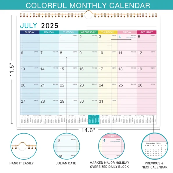 • Stay organized with this 18-month wall calendar from July 2025 to December 2026. Thick paper and hook design.
