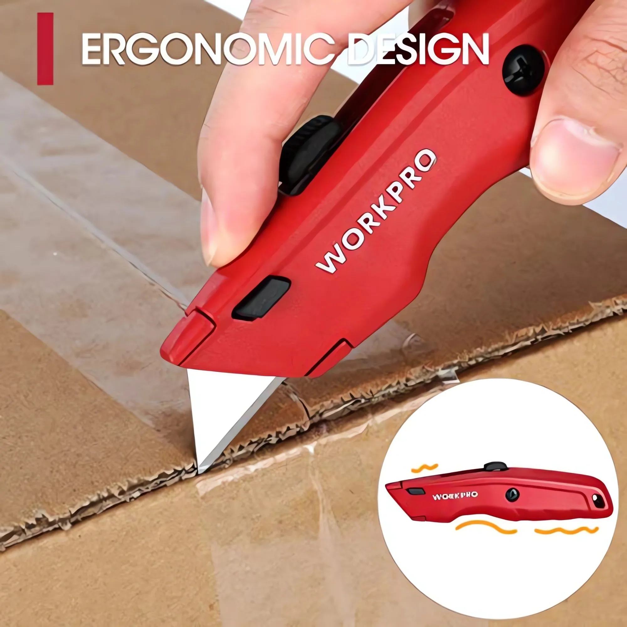 Heavy Duty Utility Knife Retractable Box Cutter with All Metal Body and Quick Change Razor Blades